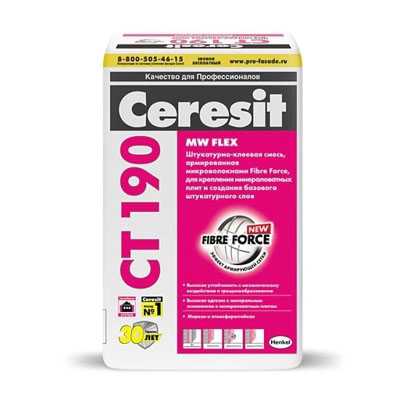 Штукатурно-клеевая смесь для мин ваты СТ190 Ceresit